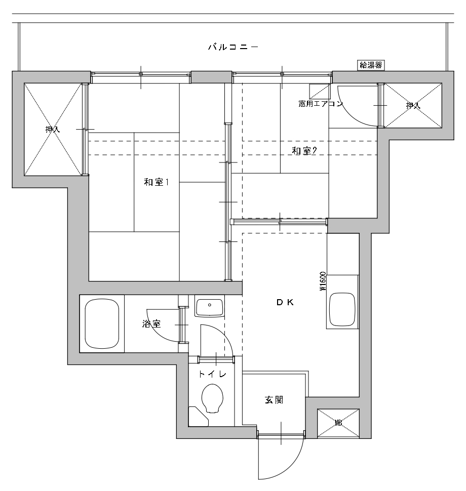 以前は、6畳と4畳半の和室が二間ある2Kのお部屋でした。